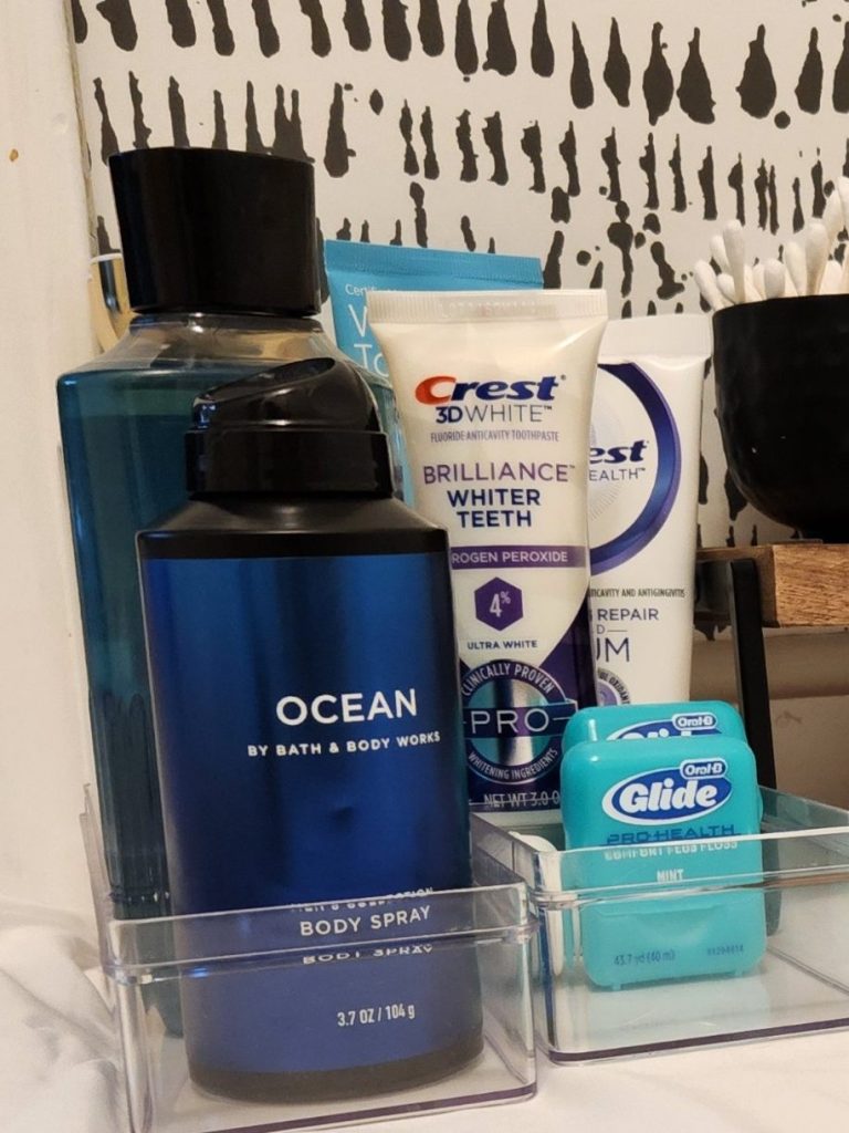 Is the toothpaste always on the counter? Are there hair ties on the floor? Ever wonder where the extra razors are? Is the space under your sink a chaotic mess? I can help you organize your bathroom with labeled bins, making it easy to find all your products.